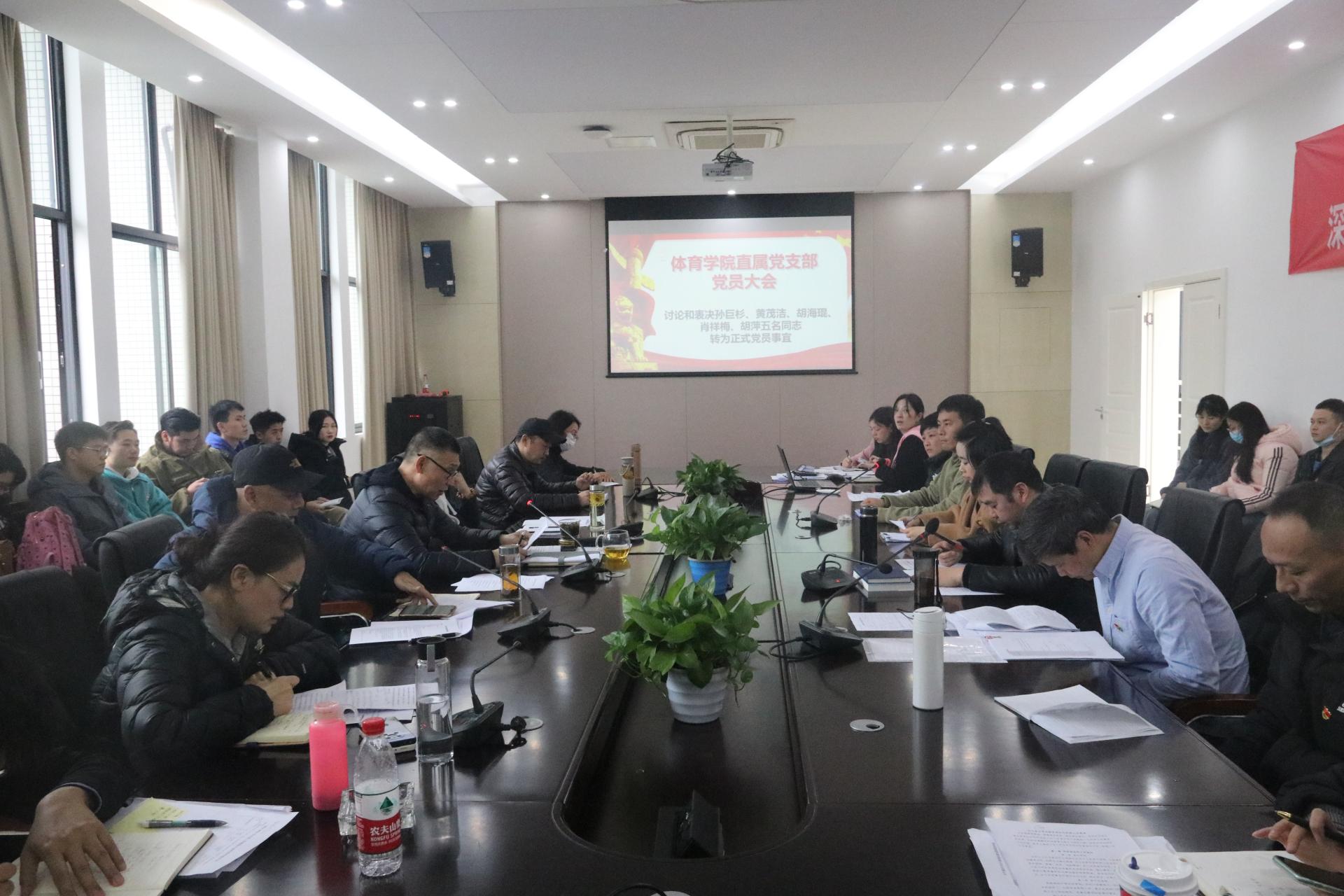 11月30日,乐鱼手机版app直属党支部在游泳池二楼会议室召开支部党员大会,讨论和表决孙巨杉等5名中共预备党员的转正事宜。支部全体师生党员参加,应到62人,实到54人。直属党支部书记杨远波主持会议。