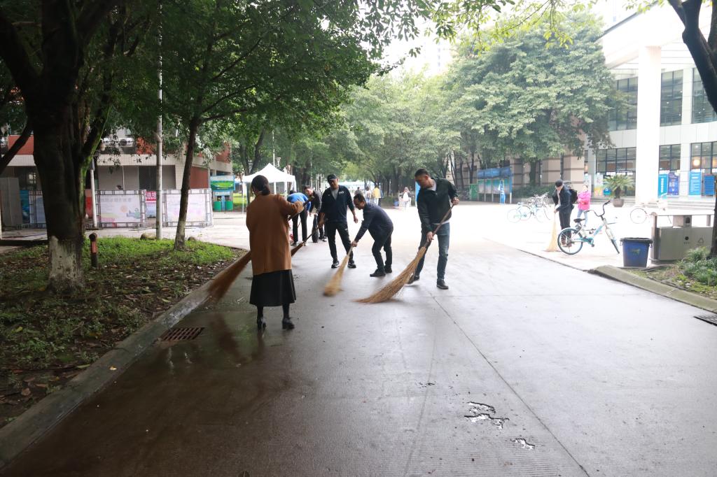 本次活动由杨院长和阴院长亲自带领师生党员对五谷堂公共区域进行了彻底的清理,对食堂入口及周边道路区域的树叶、纸屑及绿化带内杂草杂物进行了大扫除。整个活动分工有序,领导带头,全员参与,充分展现出乐鱼手机版app师生不怕脏、不怕累、不怕苦的劳动精神。活动不仅营造了整洁卫生、舒适有序的学习工作生活环境,引导师生自觉养成卫生健康、守序文明的生活习惯,也极大地提高了师生的凝聚力和向心力。
