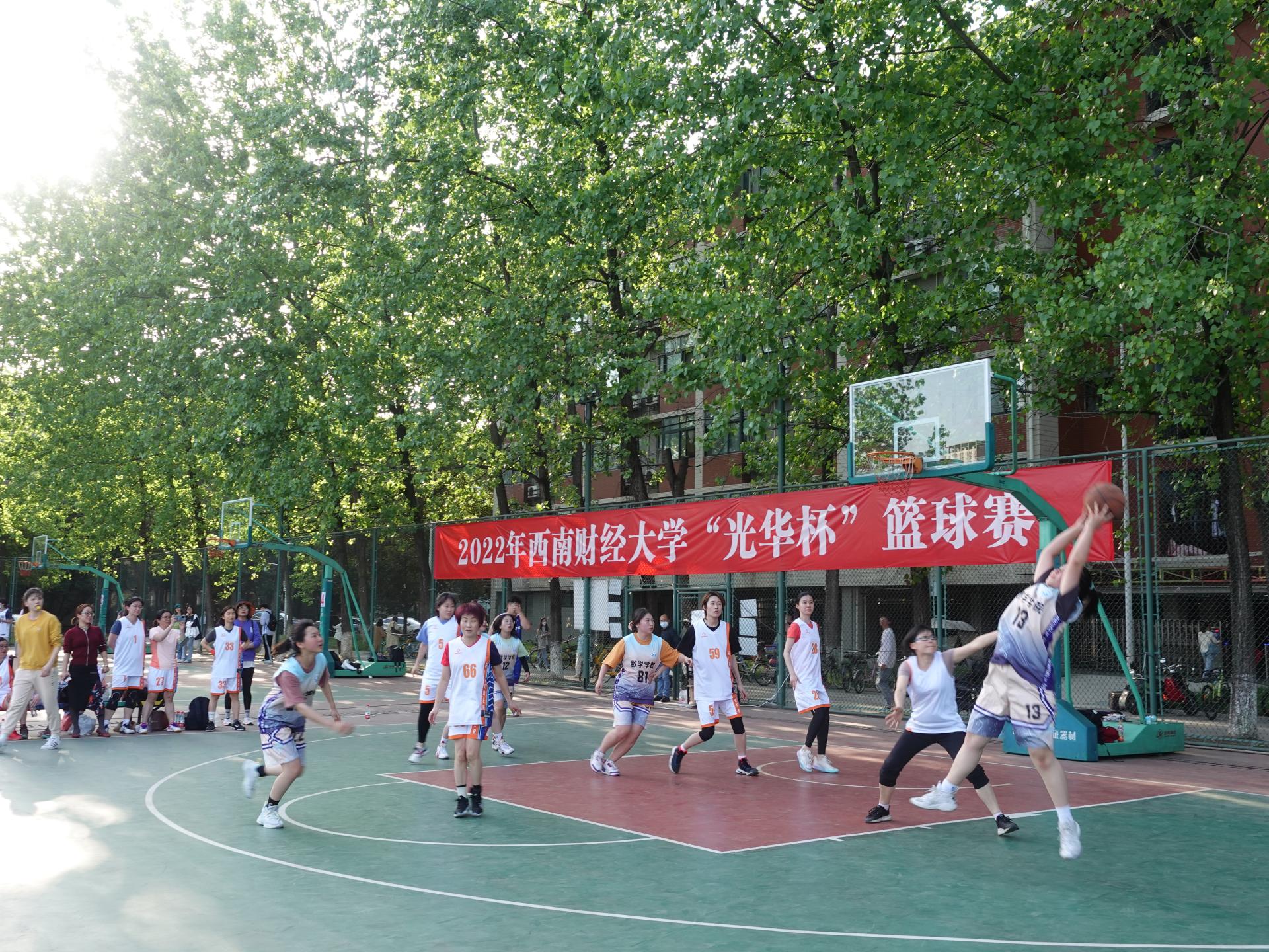 4月18日,2022年西南财经大学“光华杯”篮球赛在柳林校区拉开帷幕。本次比赛设置了男女“五人制篮球”和“趣味篮球”两项比赛,共有来自16个学院的学生、教工及校友,共32支队伍参加,参赛人数达到400余人。