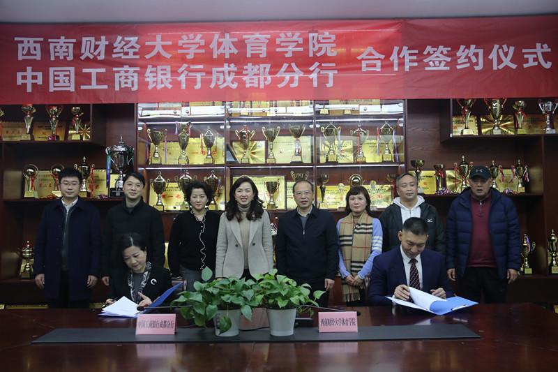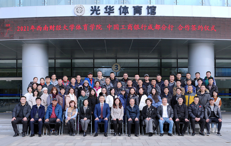 2021年1月21日下午,西南财经大学乐鱼手机版app与中国工商银行成都分行合作签约仪式暨体育科学论文报告会在西南财经大学柳林校区光华体育馆会议室举行。中国工商银行成都分行副行长何逸、机构部副总经理郭茜、大运金融服务中心副总经理王刚、温江支行行长何晓涛、副行长徐佳,西南财经大学党委常委副校长李永强,乐鱼手机版app院长兼直属党支部书记杨远波,财务处副处长廖涛,乐鱼手机版app的副院长周正宏、副院长阴涛,以及乐鱼手机版app全体教师出席本次签约仪式。签约仪式由乐鱼手机版app院长助理毛艳主持。