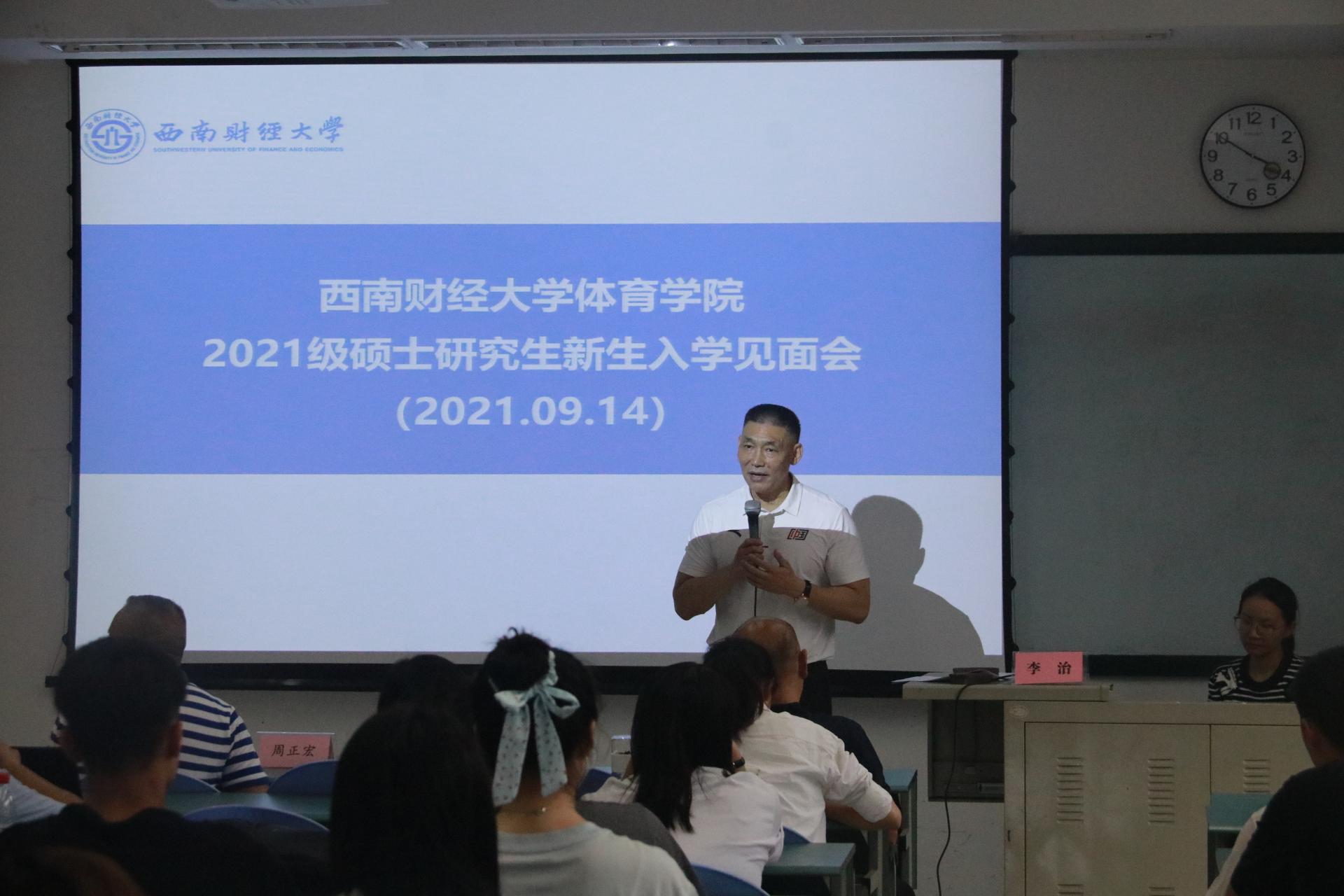 杨远波首先代表学院向2021届新同学加入乐鱼手机版app大家庭表示热烈欢迎。他指出,“当代青年要肩负历史使命,坚定前进信心,立大志、明大德、成大才、担大任,树立远大理想和目标,做一个有志向的体育人”。同时,他引用毛泽东的第一篇论著《体育之研究》强调体育的重要性,带领大家回顾百年体育发展史,让新同学在建党百年之际感受体育发展的沧桑巨变。最后,杨远波从安全、生活、学习3个方面对新生提出要求,期望大家在研究生生涯中学有所成,努力成为一名精管理、懂体育的复合型体育人才,为国家体育事业发展添砖加瓦。