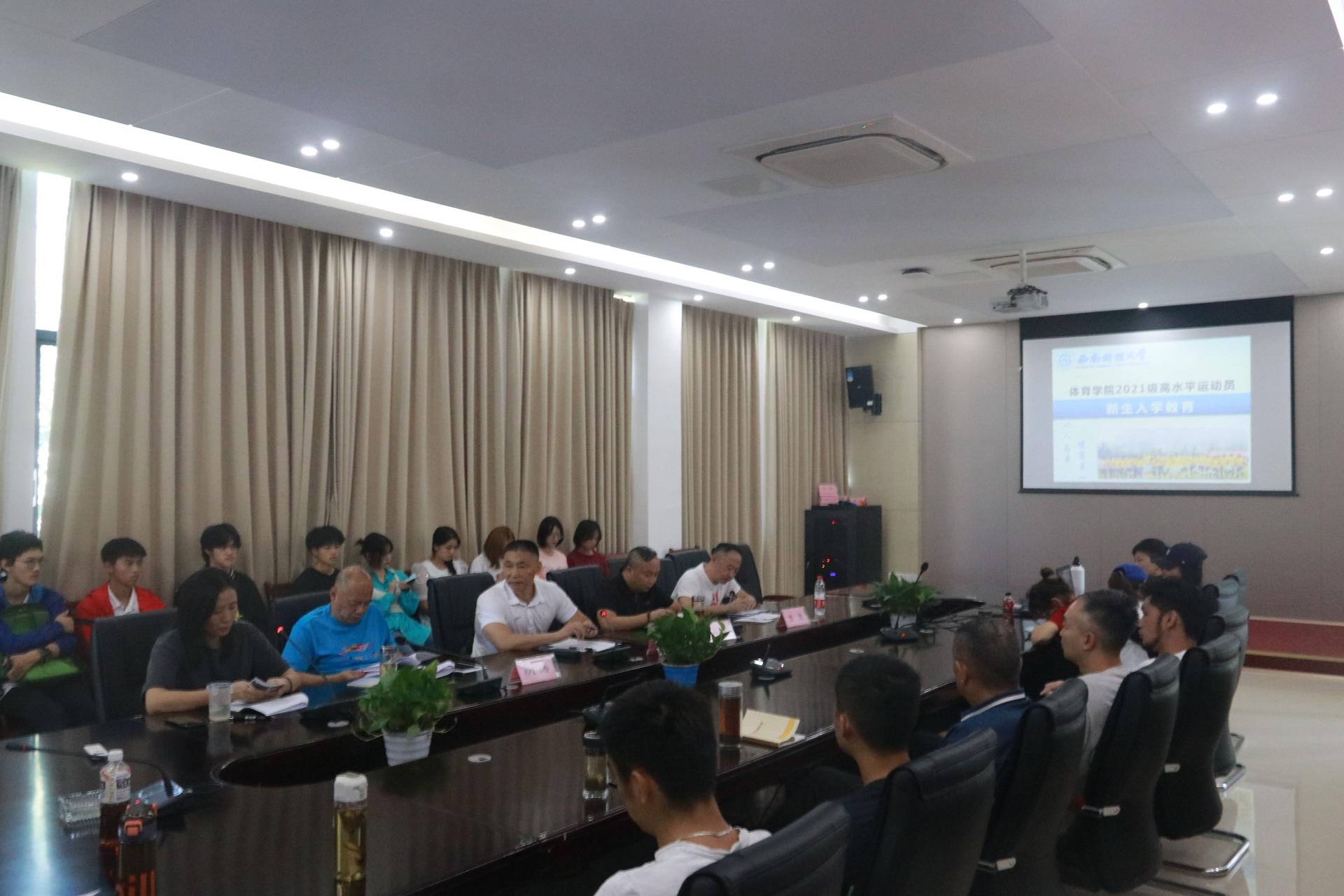 9月28日,西南财经大学2021级高水平运动队新生入学教育会在柳林校区乐鱼手机版app201会议室举行,高水平运动队全体新生参会。乐鱼手机版app院长兼直属党支部书记杨远波,副院长周正宏、阴涛,直属党支部副书记李治及高水平运动队全体教练员出席了本次会议。会议由竞技体育系主任张锐主持。