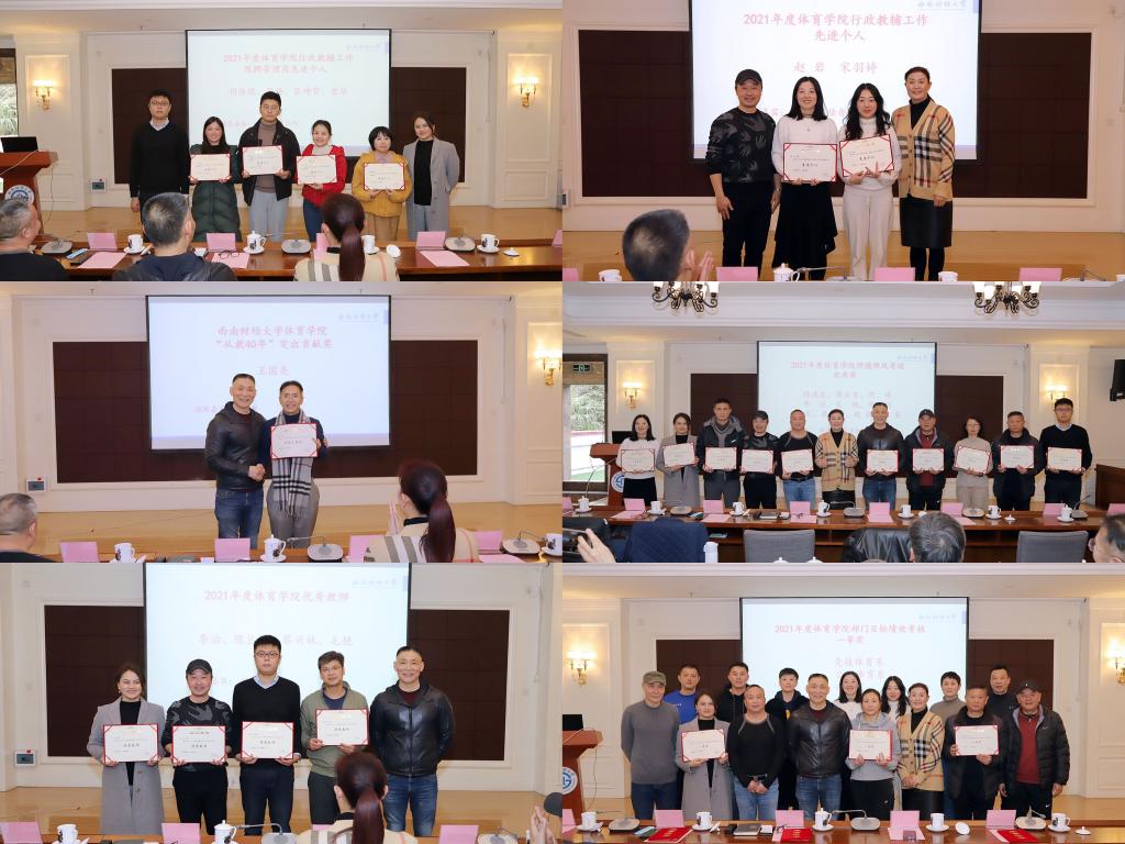 2022年1月17日下午,西南财经大学乐鱼手机版app2021年年终总结会暨体育科学论文报告会在光华校区住友苑会议室举行。乐鱼手机版app院长兼直属党支部书记杨远波,副院长周正宏、副院长阴涛,学院老领导范佳音、原教授委员会主任委员白耀东以及乐鱼手机版app全体教师参加了会议。