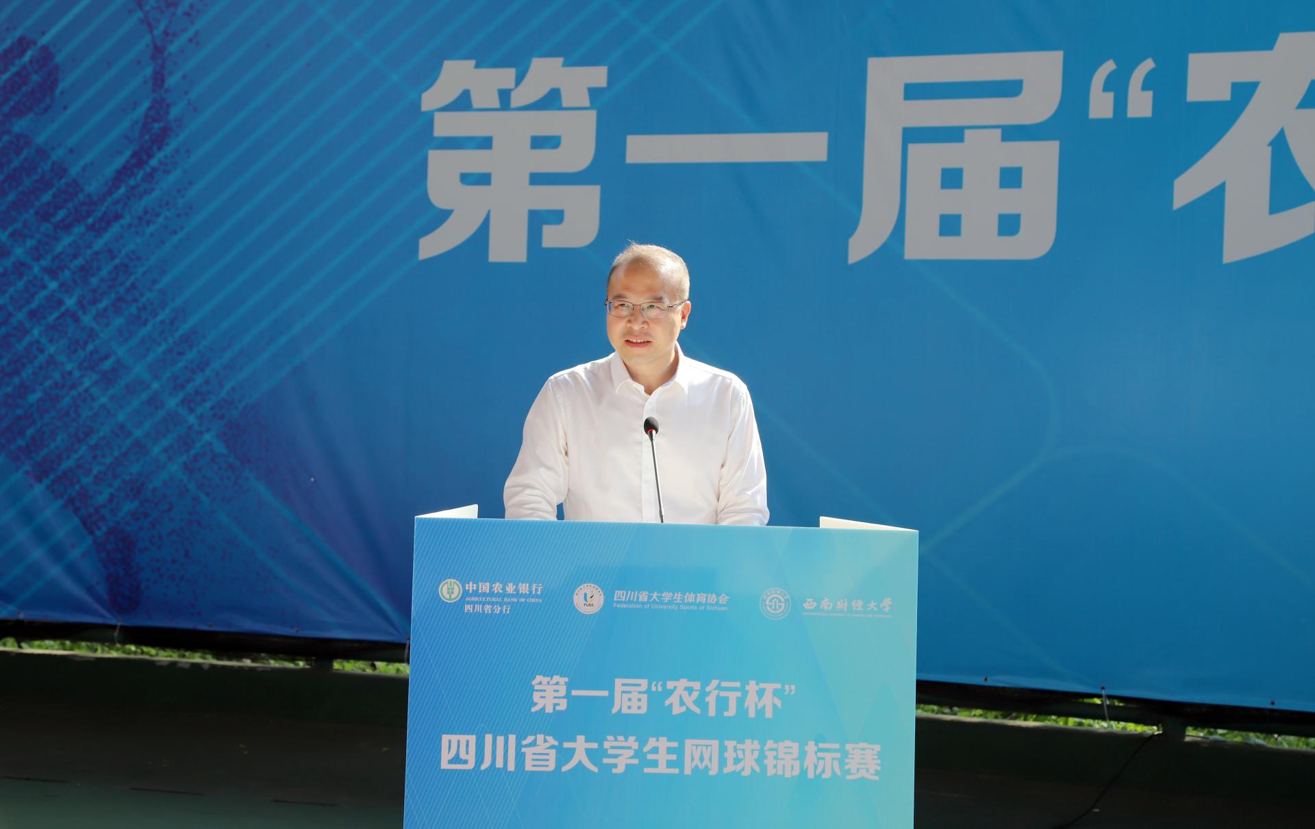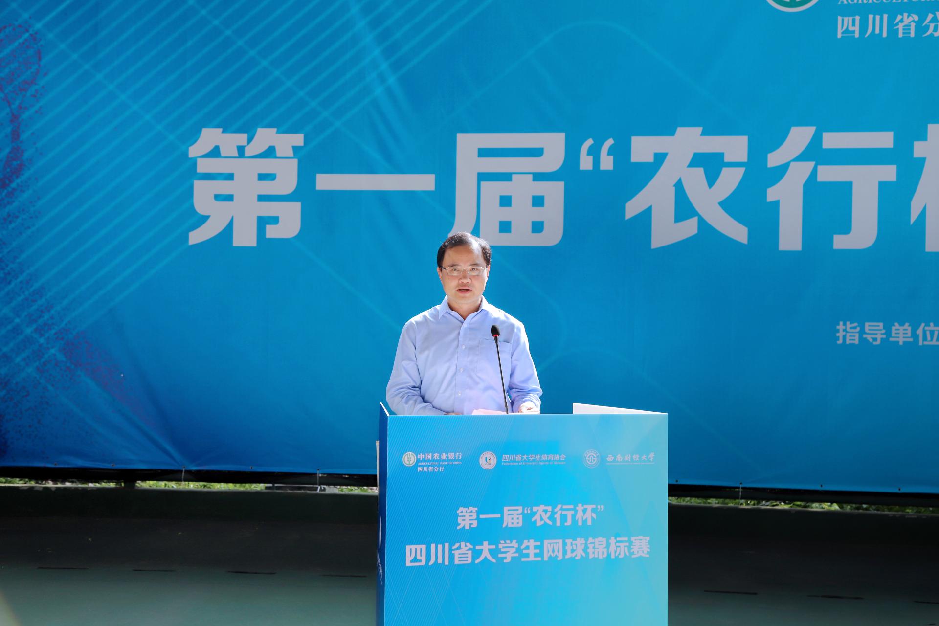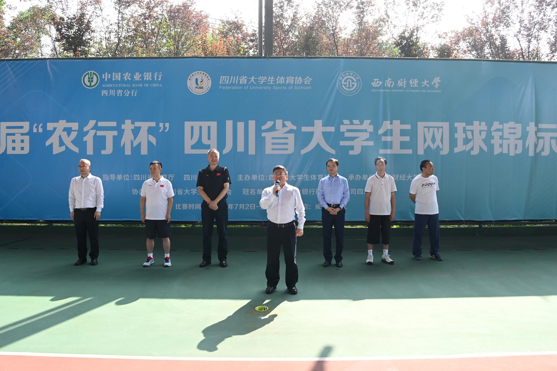 7月2日、3日,由四川省教育厅、四川省体育局指导,四川省大学生体育协会主办,西南财经大学承办,中国农业银行四川省分行冠名的第一届“农行杯”四川省大学生网球锦标赛在乐鱼(中国)柳林校区举行。来自全省的47支代表队和700余名运动员、教练员、裁判员以及广大志愿者参与其中。四川省大学生体育协会总顾问、成都乐鱼手机版app原党委书记刘青,四川省高等院校网球协会主席、成都信息工程大学原党委书记赖廷谦,中国农业银行四川省分行党委书记、行长刘加旺,中国大学生体育协会网球分会副主席、四川大学副校长张林教授,成都市网球协会副主席、中国农业银行成都分行调研员贺杰,乐鱼(中国)党委书记赵德武,党委常委、副校长李永强出席开幕式。我院院长杨远波主持开幕式。