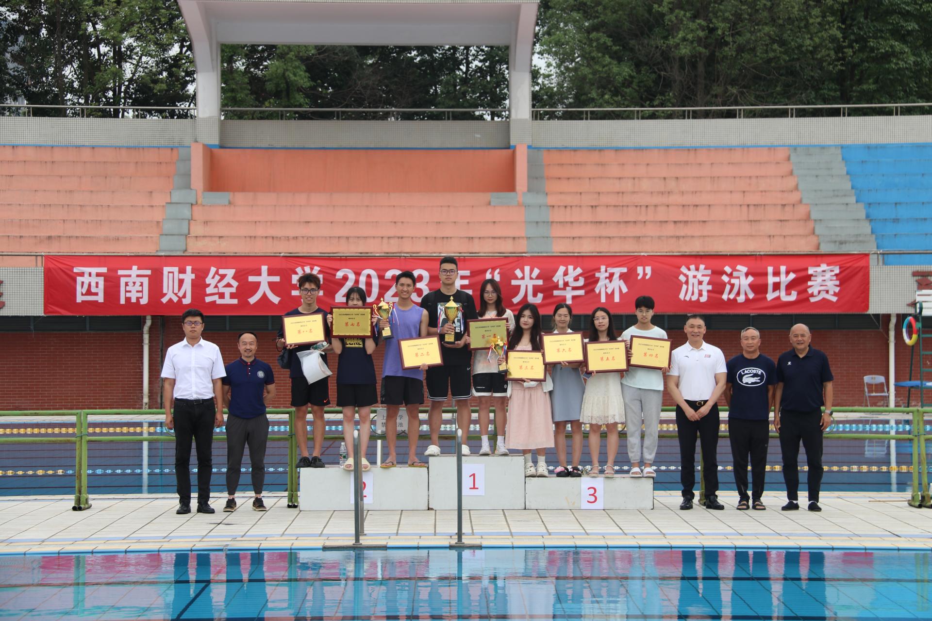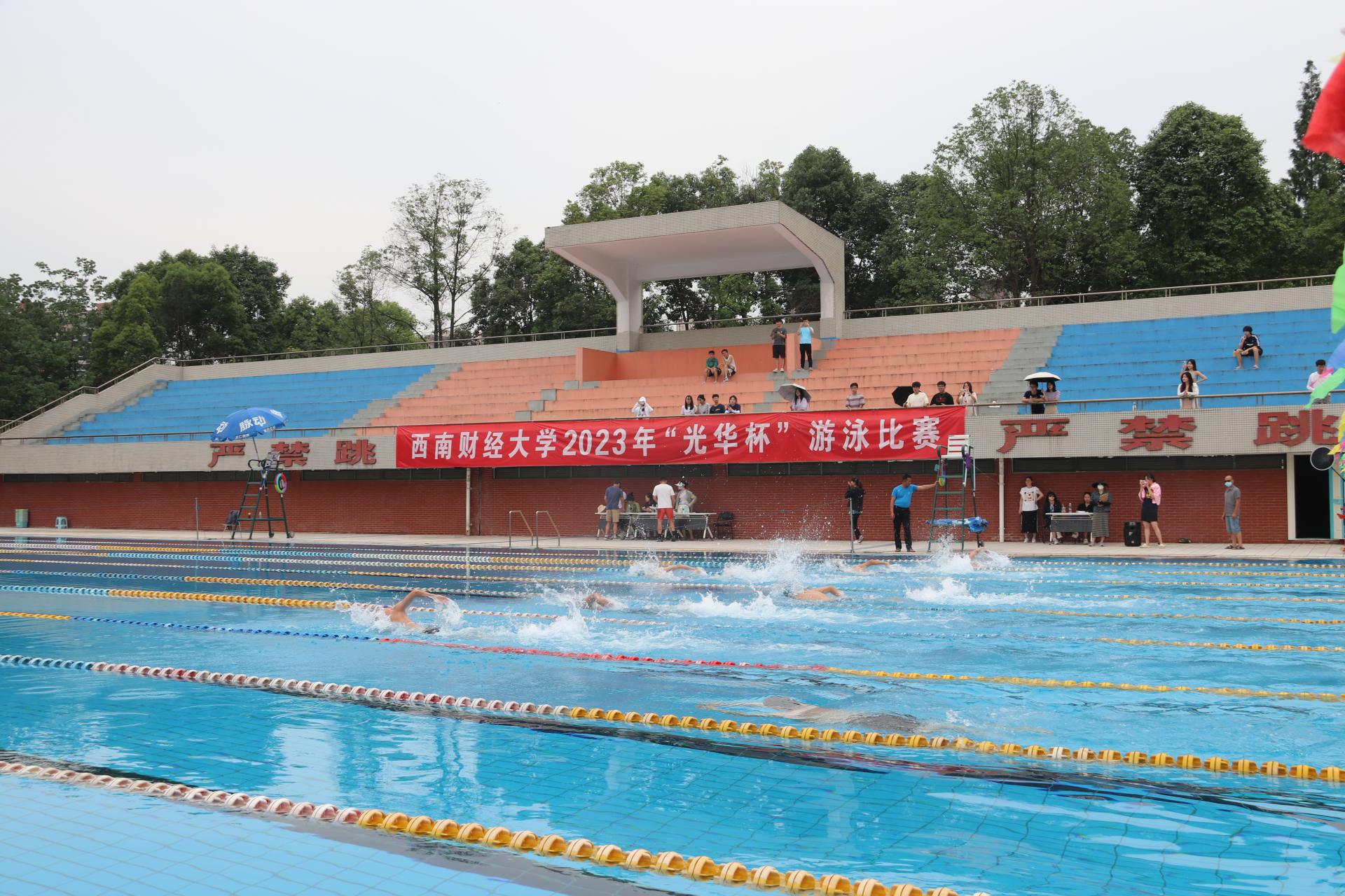 6月13日下午,“礼赞新时代·奋进新征程,迎大运盛会·迎百年校庆”2023年西南财经大学“光华杯”游泳比赛在柳林校区游泳池圆满举行。