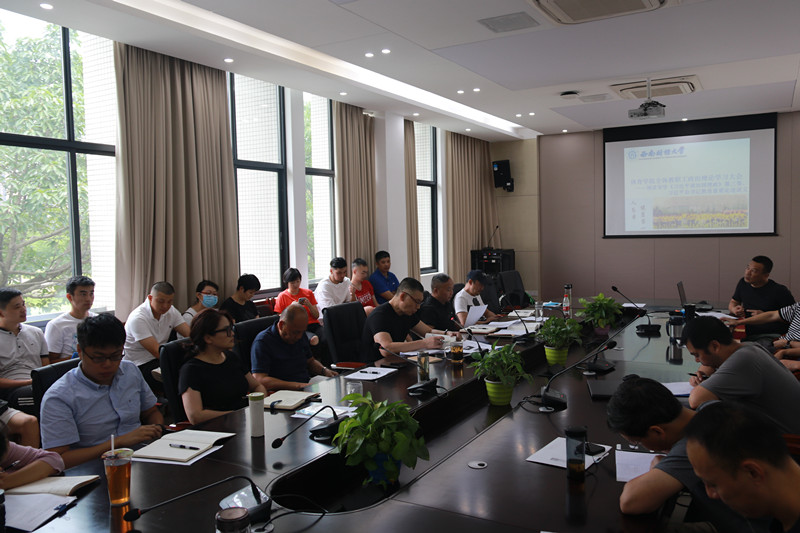 9月8日,乐鱼手机版app在游泳池201会议室召开全体教职工政治理论学习会,本次政治理论学习会分为两个议题,一是传达学校中层干部读书班暨学习贯彻党的十九届四中全会精神专题培训会会议精神,二是学院领导领读导学《习近平谈治国理政》第三卷、习近平总书记教育重要论述讲义有关篇目。学院全体教职员工参会,会议由杨远波院长主持。