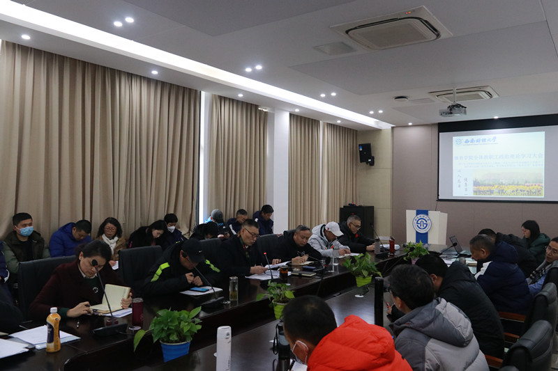 12月29日,乐鱼手机版app在游泳池二楼会议室召开全体教职工政治理论学习会。本次学习会包含三个议题,一是深入学习贯彻全国及学校研究生教育会议精神,二是学习周永开等7名“优秀党员”的先进事迹,三是传达学习中共西南财经大学第十三届代表大会第三次会议精神。学院全体教职员工参会,会议由杨远波院长主持。
