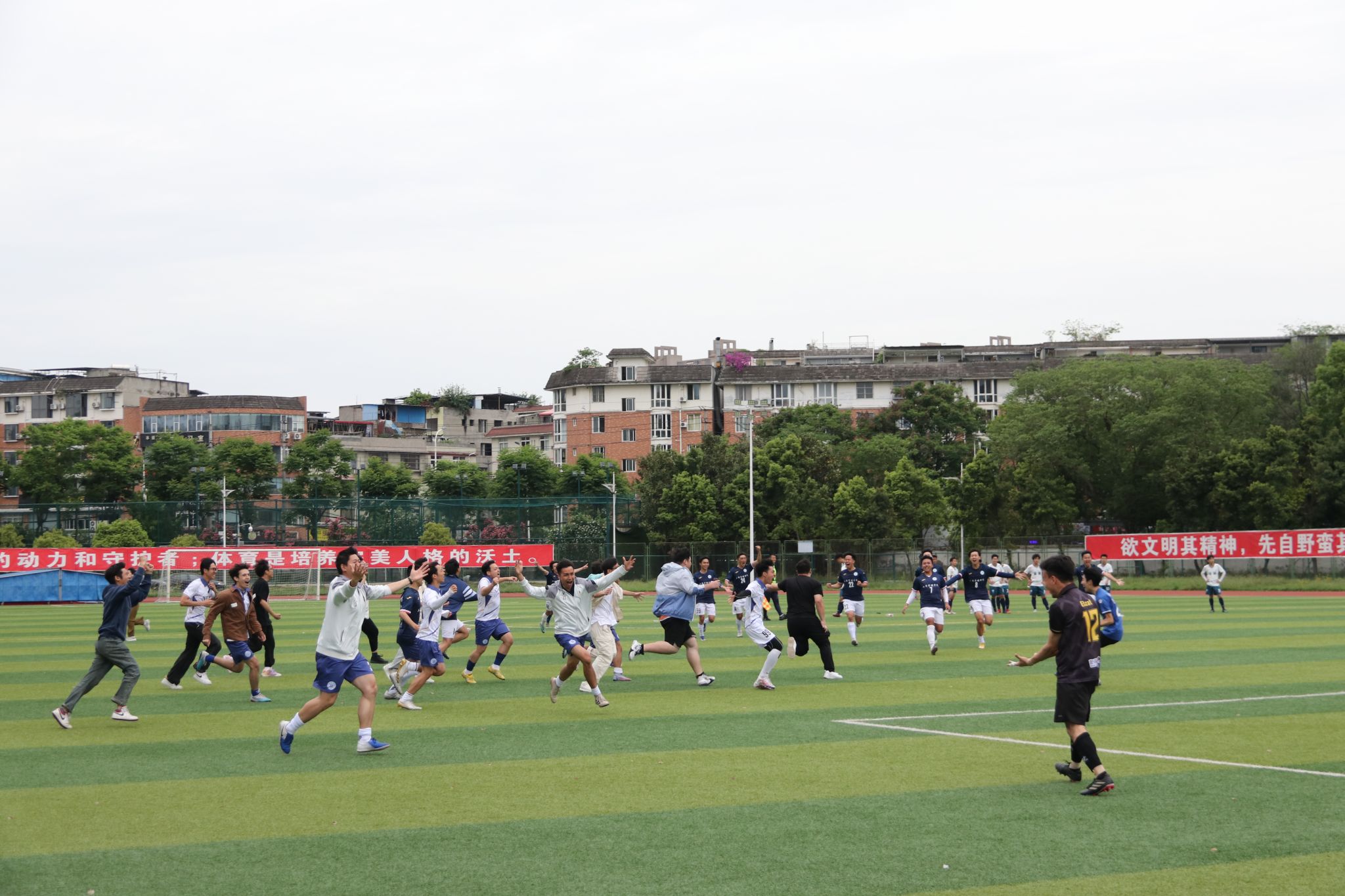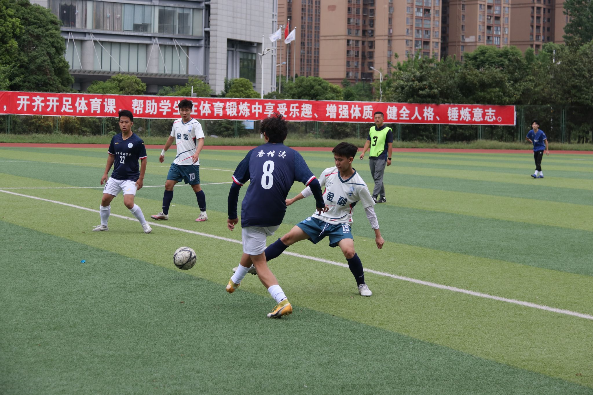 本次比赛设置了“男子十一人制”和“女子五人制”两个组别及颠球、运球接力两项趣味足球赛,共有来自16个学院、32支队伍(含教工队),约450余人参加。各学院积极备战、奋力拼搏,经过14天、93场紧张而激烈的竞技比赛,同学们赛出了风格、赛出了水平,青春激扬,挥洒汗水,绽放了属于年轻一代的激情与活力。通过这次比赛,充分发挥了体育的育人功能,展示了新时代大学生的蓬勃朝气和勇于拼搏的优良品质。乐鱼手机版app院长杨远波对此指出,技术、战术和身体素质是体育竞赛的基础,但决定一个运动员或一支团队是否优秀的关键在于其意志品质和作风建设。正如毛泽东先生在《体育之研究》中所写:“体育一道,配德育与智育,而德智皆寄于体。无体是无德智也。”希望我们西财的学生都能努力成为堪当民族复兴重任的时代新人,在新时代奋进新征程中,砥砺奋发,以昂扬的精神风貌迎接百年校庆的到来!共谱西财百年新篇章!