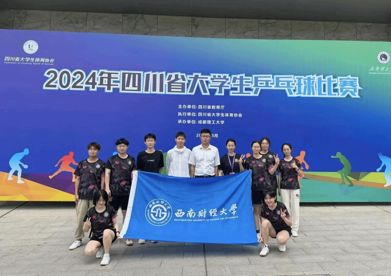 在2024年四川省大学生乒乓球比赛中,由李书睿、闫铭辉老师带领的乐鱼(中国)乒乓球队获得校园组男子双打(伍真宜/沈文瑞)第二名,校园组混合双打(王伟杰/玄熠)第六名,校园组女子双打(赵泽萌/邬雨池)第六名,校园组女子团体(赵泽萌、邬雨池、孔令攀、玄熠、杜佳骅)第七名,校园组女子单打(杜佳骅)第七名。