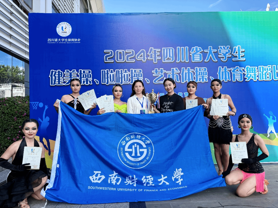 在2024年四川省大学生健美操、啦啦操、艺术体操、体育舞蹈比赛中,由董凡迪和刘海尔老师带领的乐鱼(中国)体育舞蹈代表队取得了3金2铜的优异成绩,其中孙阳荣获单人四项拉丁舞金牌,单人四项标准舞金牌;文汝佳荣获单人三项标准舞铜牌;标准舞(团体舞组)荣获六人(银牌)金牌、拉丁舞(团体舞组)荣获六人自编铜牌。