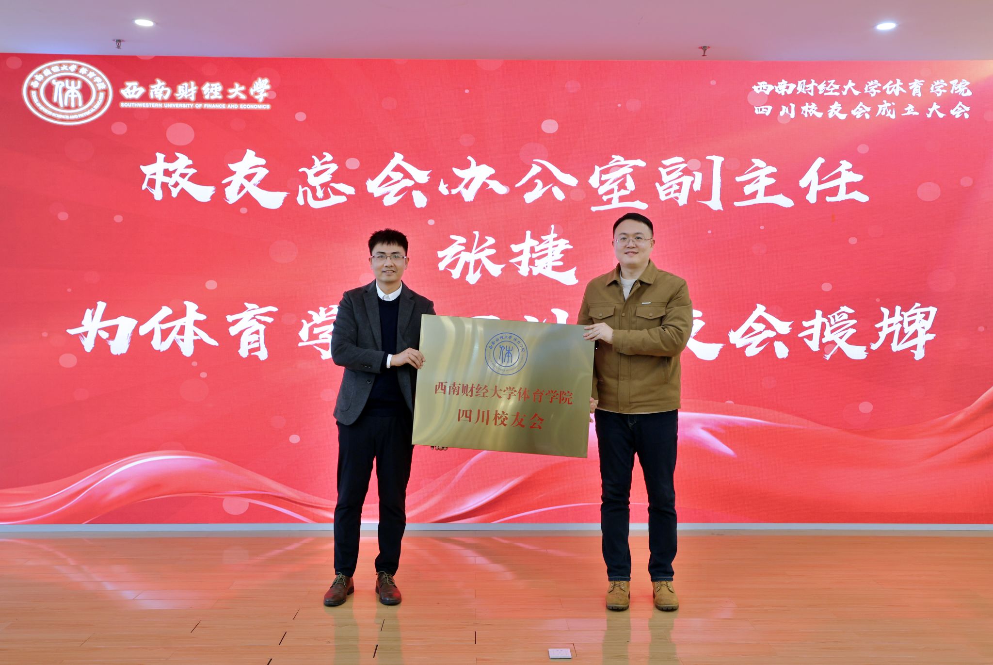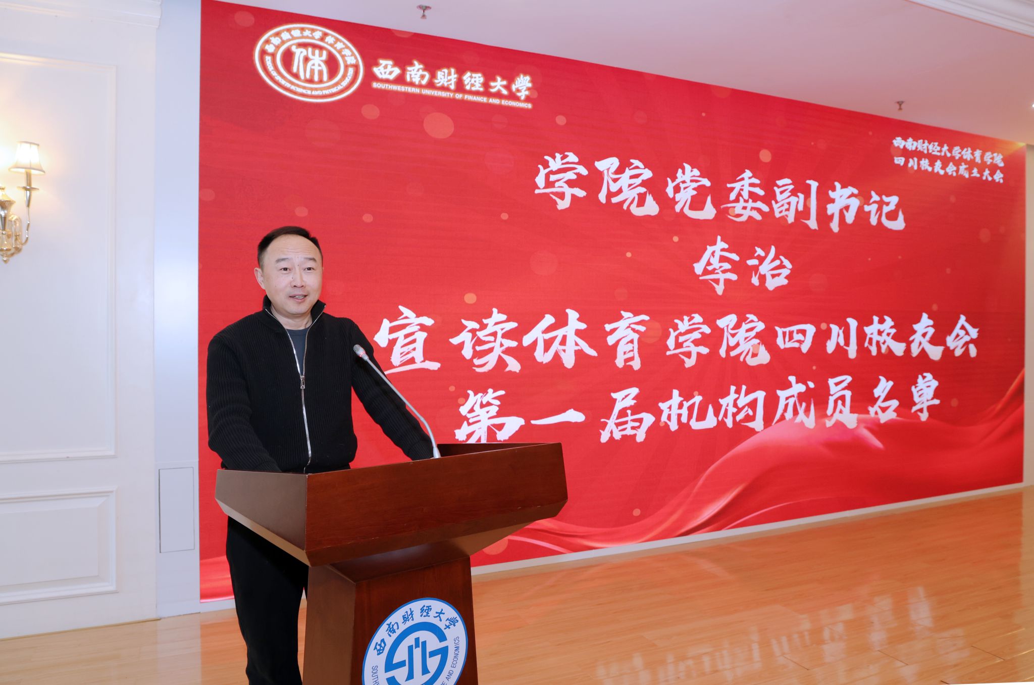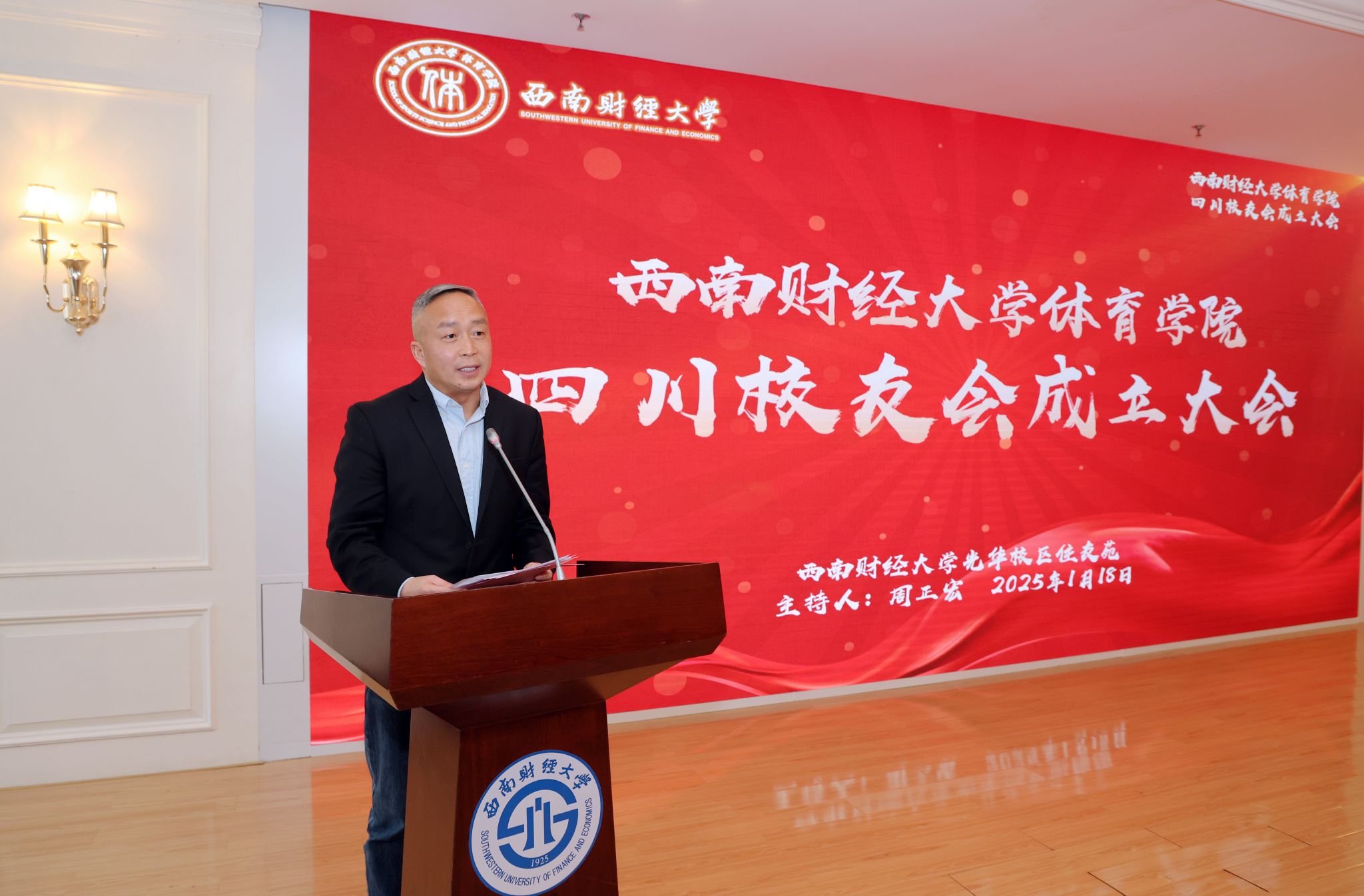 2025年1月18日,西南财经大学乐鱼手机版app四川校友会成立大会在光华校区成功举办。校友工作办公室副主任张捷、乐鱼手机版app班子成员及全体教师出席会议,四川地区校友代表共计80余人参加大会。学院党委书记周正宏主持会议。