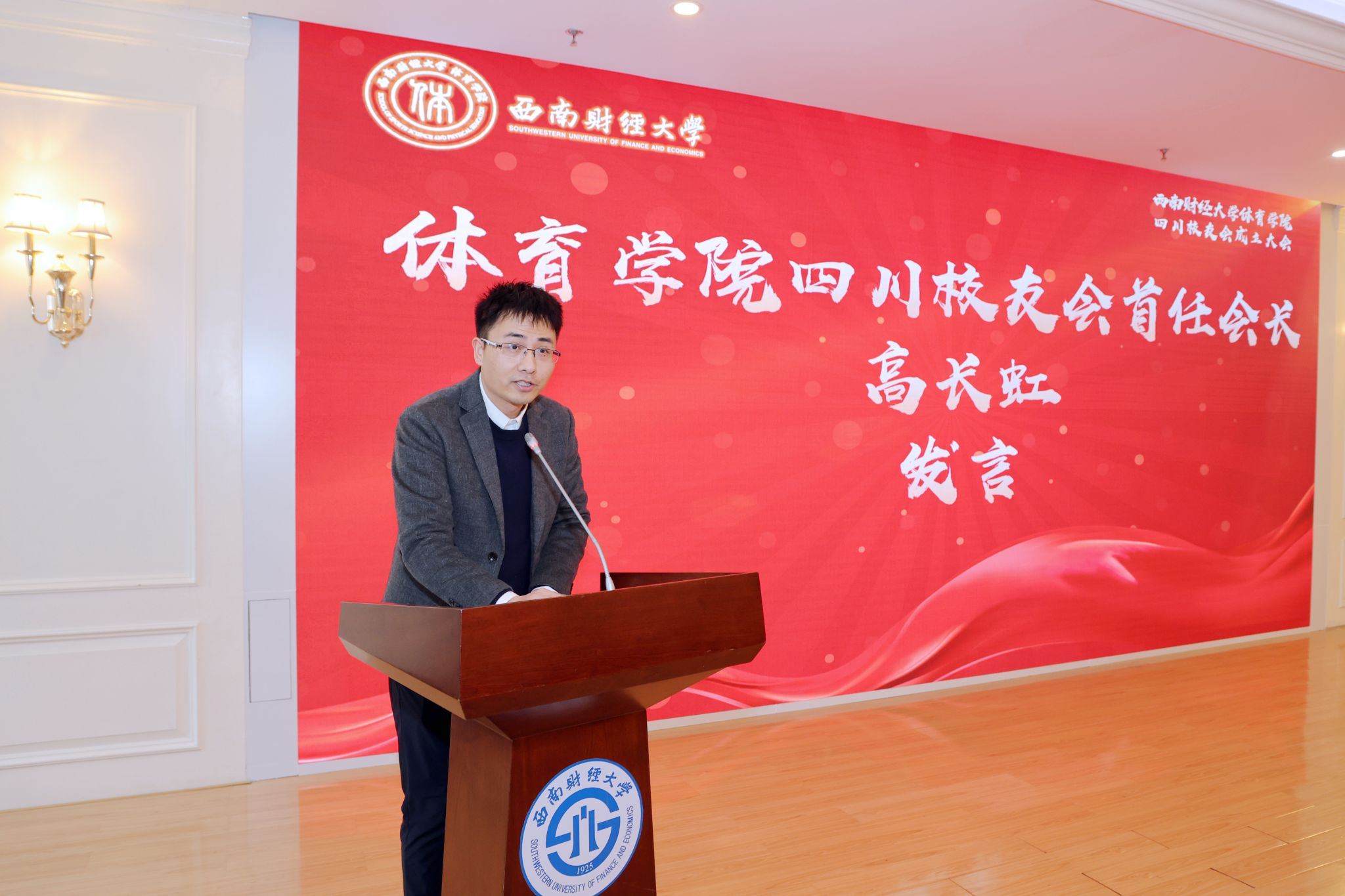 校友高长虹担任学院四川校友会首任会长并发言。他为母校取得的成就和学院发展的成绩感到自豪。他表示,在西财建校百年之际成立乐鱼手机版app四川校友会,既是对过往辉煌历史的致敬,更是开启未来崭新篇章的重要举措。校友会不仅是联络校友情感的纽带,更是信息交流的平台和事业发展的助推器,校友会将秉承“立足四川,辐射全国,促进合作、共谋发展”的宗旨,凝聚校友情感、传承西财精神、促进合作共赢,为学院发展助力、为母校百年华诞献礼。