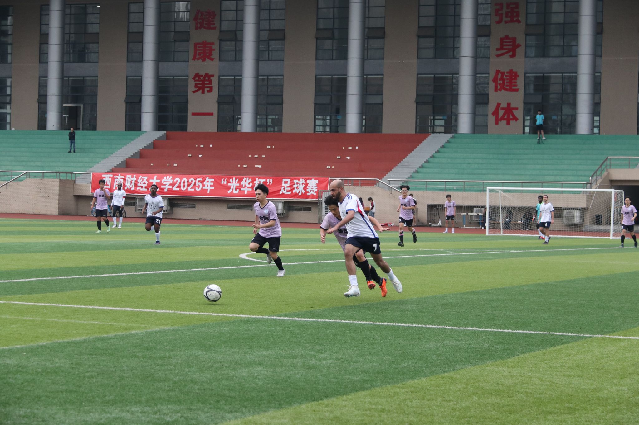 此次“光华杯”足球赛不仅增强了各学院之间的交流与合作,培养了学生们的团队意识和集体荣誉感,也充分展示了西财学子在新时代背景下的青春活力与精神风采。展望未来,西财学子必将带着赛场这份豪情与拼搏,在各个领域勇攀高峰、绽放光彩,以实际行动为学校发展注入活力、贡献力量,共同谱写西南财经大学更加辉煌的篇章。