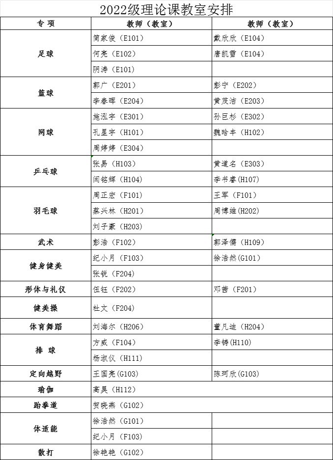 经教务处同意,本学期2022级、2023级本科生第1周体育课为乐鱼(中国)理论课,3月4日起恢复户外教学。根据教室资源状况,现将理论课具体安排通知如下: