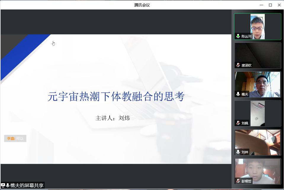 2022年5月27日上午,成都乐鱼手机版app体育经济与产业博士研究生导师刘炜教授通过线上腾讯会议,举办了题为《元宇宙热潮下体教融合的思考》的光华讲坛。体育与经济管理研究中心陈丛刊副教授主持本次讲座,学院研究生、部分教师等共计50余人参加此次讲座。