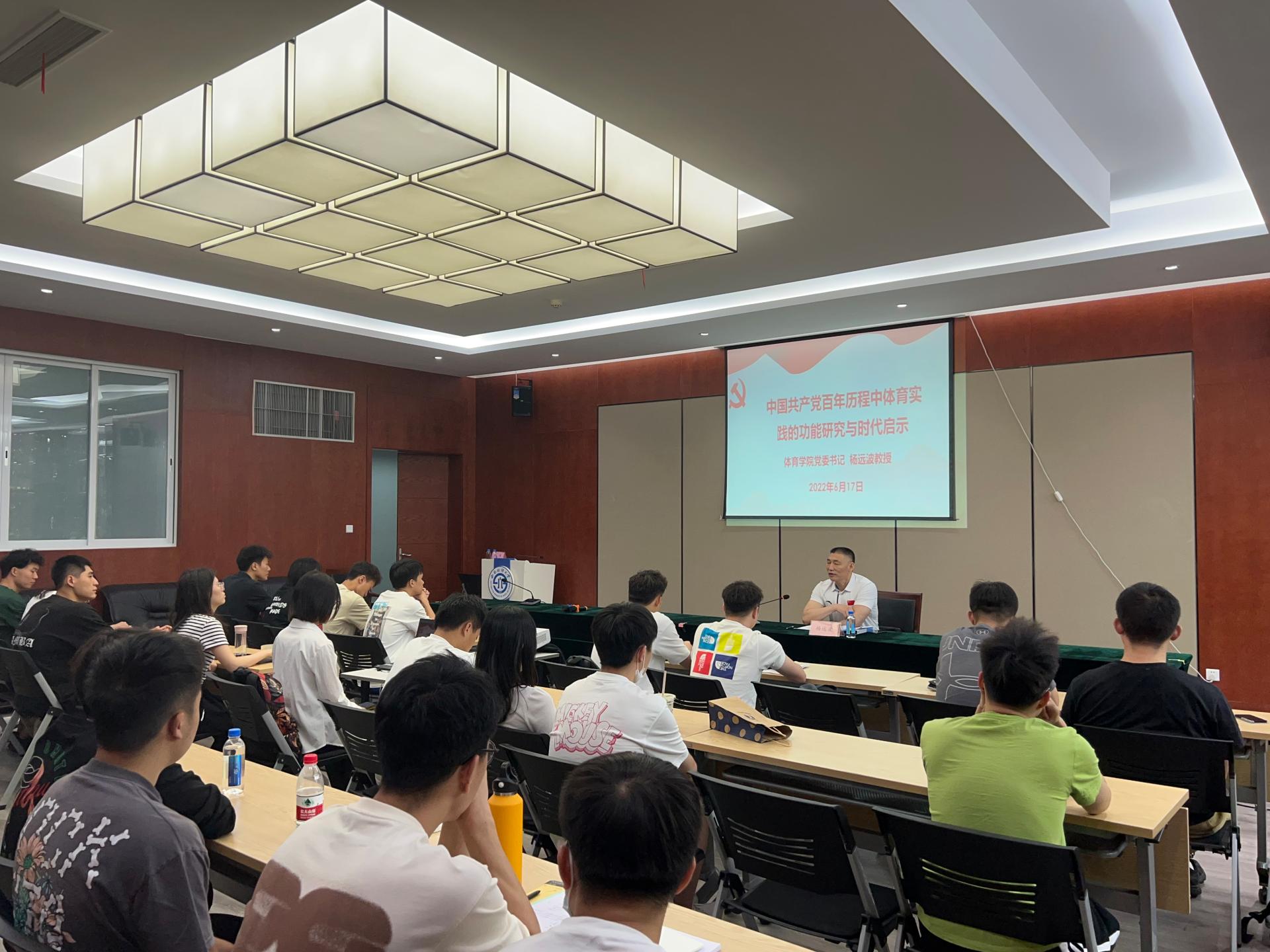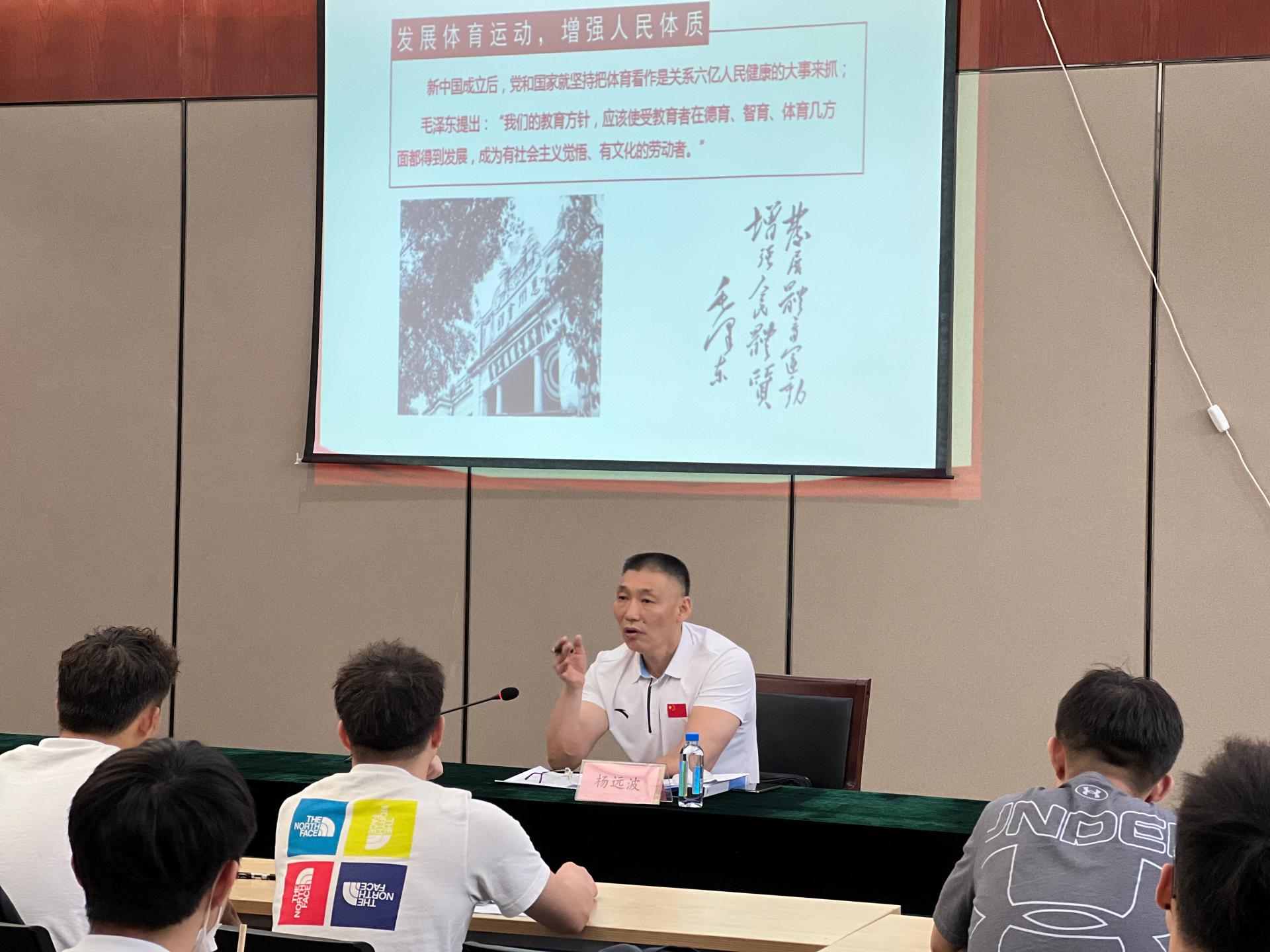 6月17日,乐鱼手机版app党组织书记杨远波在体育馆会议室为全体在校研究生开展了题为《中国共产党百年历程中体育实践的功能研究与时代启示》的专题思政理论课。
