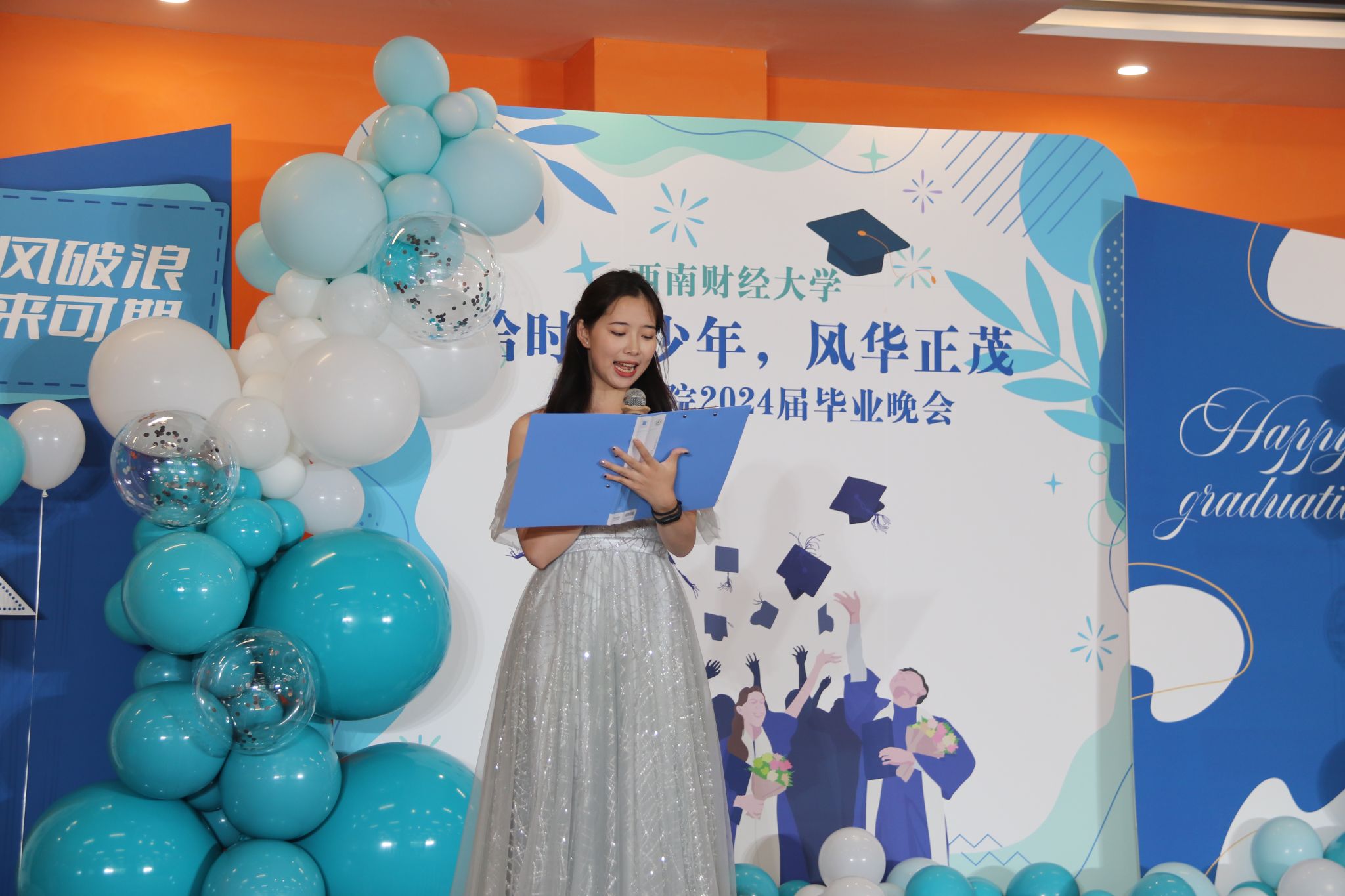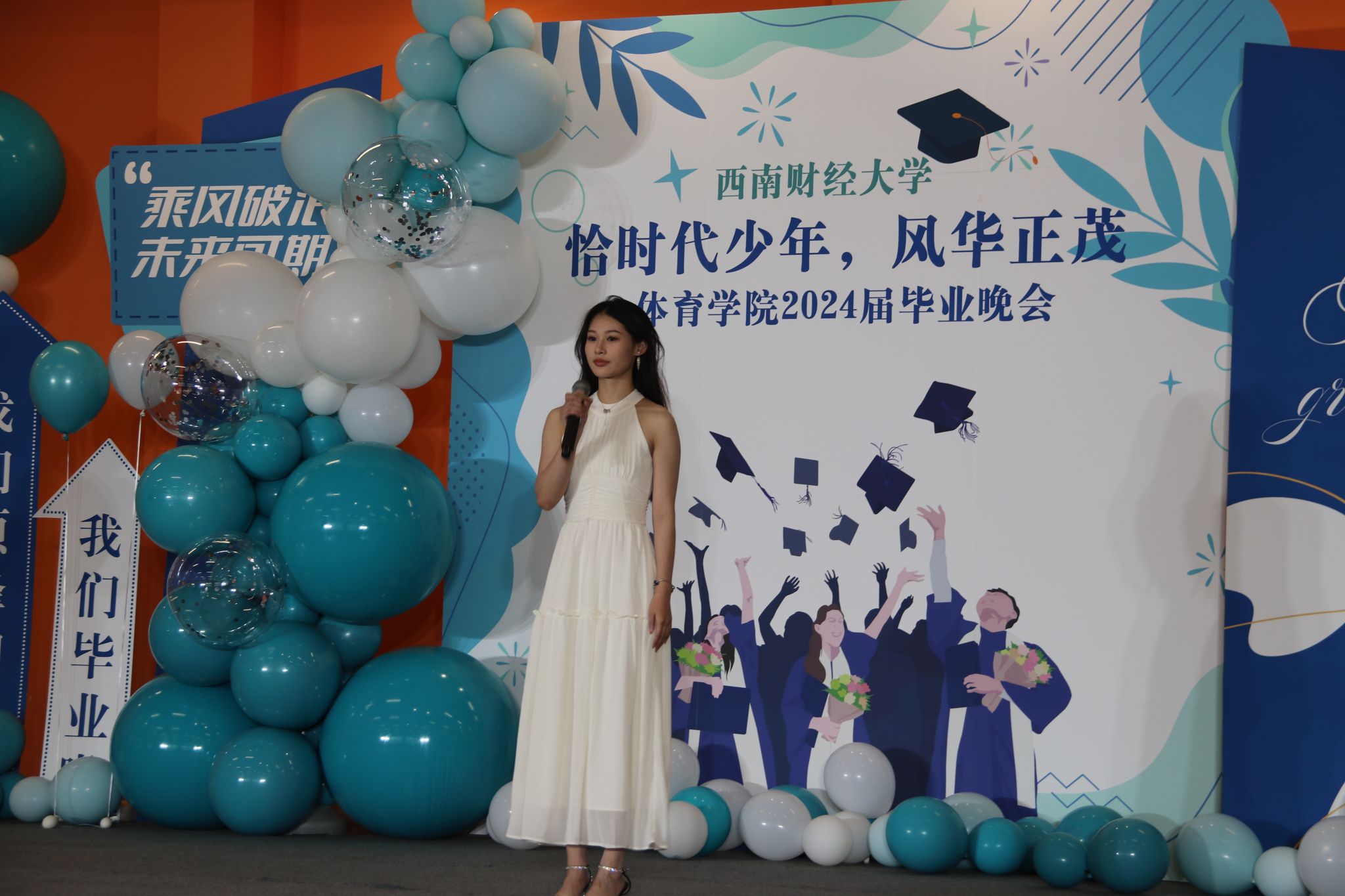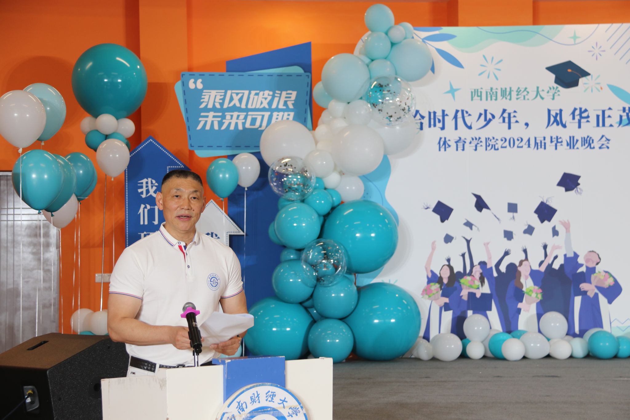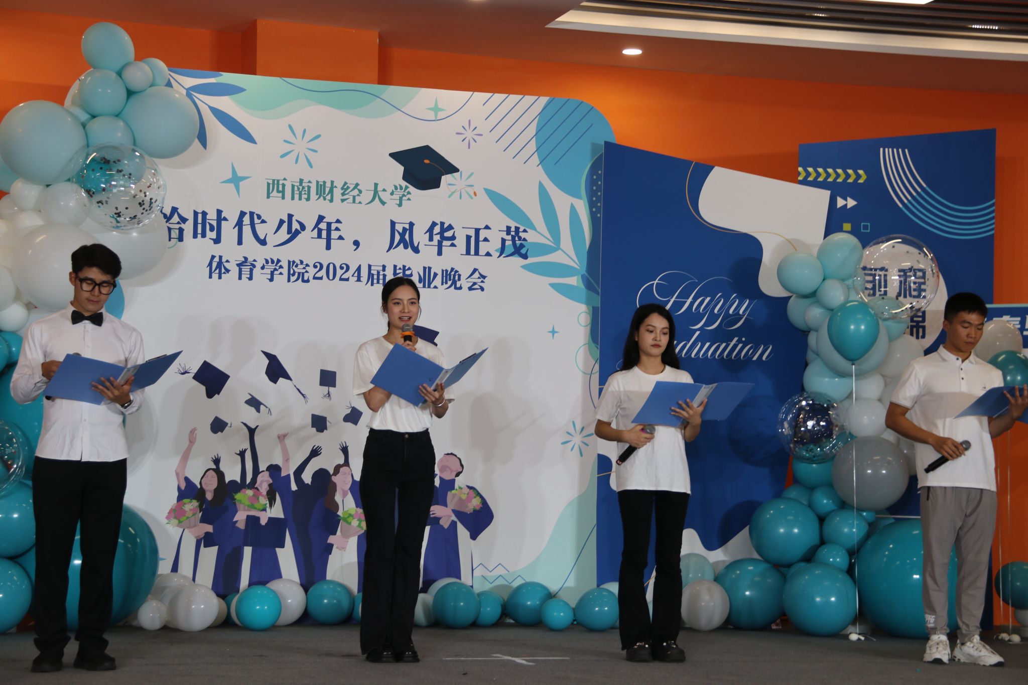 乐鱼手机版app党委书记周正宏教授主持晚会,他讲到同学和老师们相识于秋,告别于夏,同学们满怀对未来的期望,用奋斗书写青春的华章。回望一路走来的研究生生活,大家携手走过光华路欣赏满地金黄,如今的同学们实现了从成长向成才的蜕变,已经真正成为了自信自强、独当一面的西财体育人。