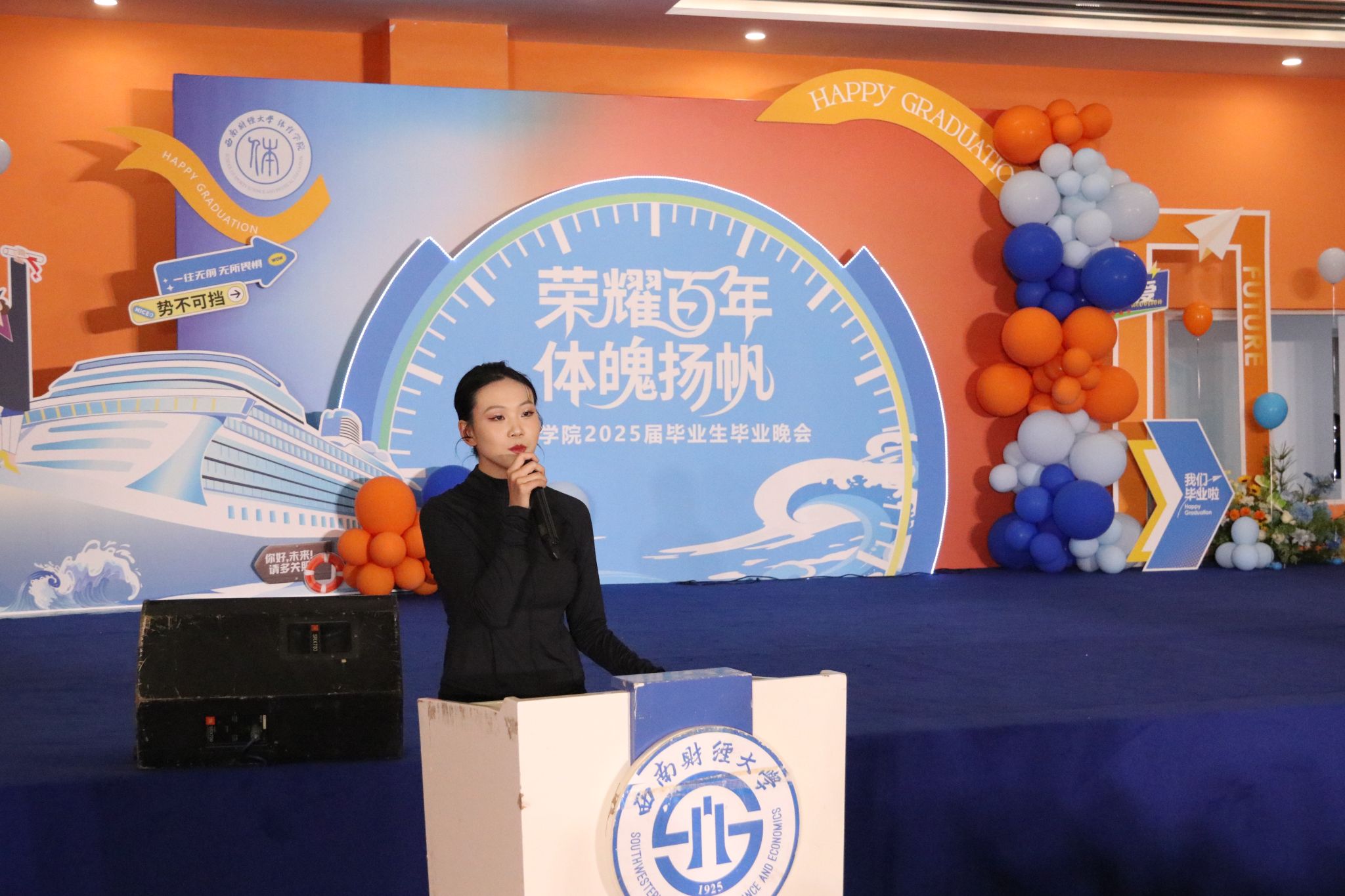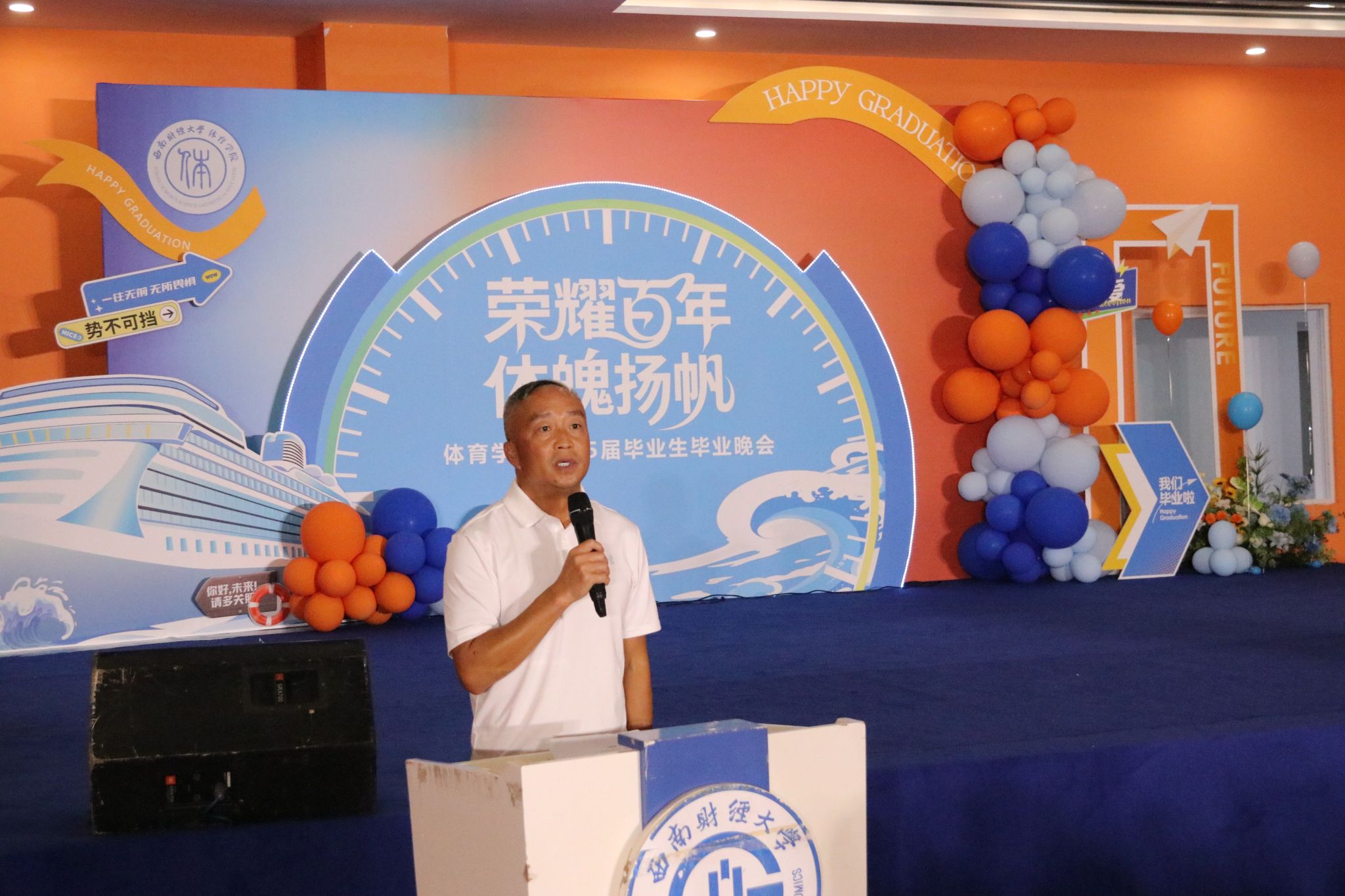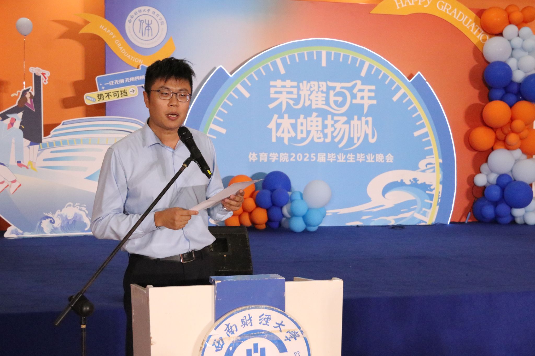 乐鱼手机版app主持工作的副院长陈丛刊讲话,他祝贺学院2025届毕业生顺利完成学业。同学们参与了彼此的青春,也见证了相互之间的成长,从陌生到熟悉,是缘分将大家相聚于西财。对于即将踏上人生的新征程,他希望大家永远热烈昂扬,始终保持刚进校园的那一颗颗赤子之心,在未来的工作和生活中发光发热,活出西财体育人的精彩。